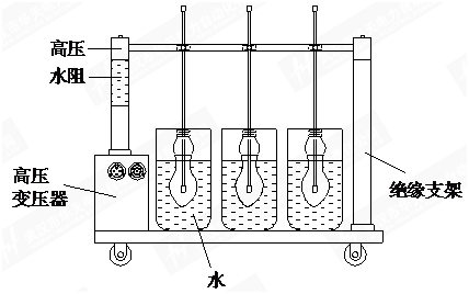 使用前先將水電阻內注水,注滿水的水電阻安裝在移動托架上,再將電極桿支撐兩端插入絕緣撐桿和水電阻內。