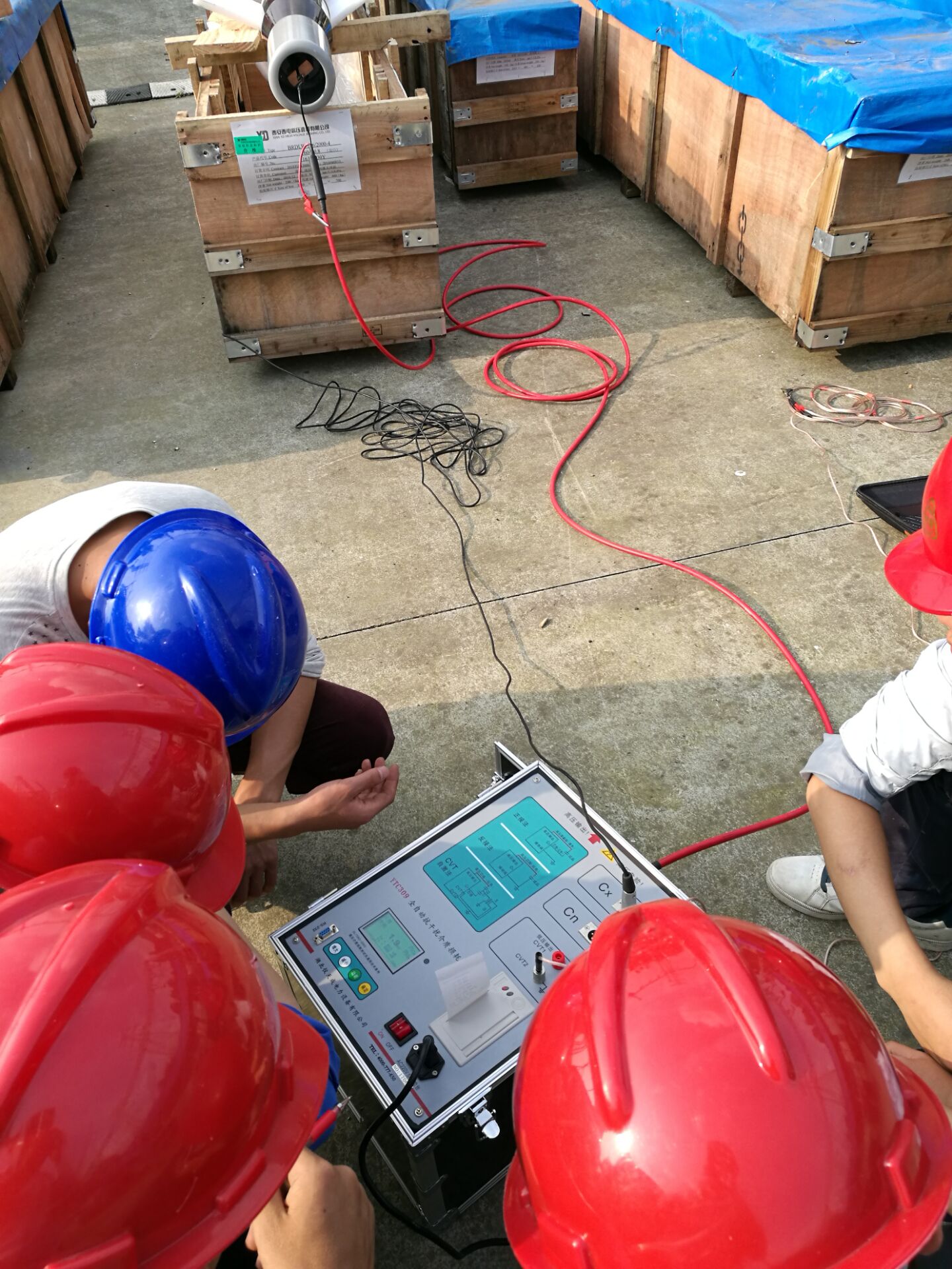 在現場,李工首先對設備進行了簡單的檢查看看設備是否有損壞,之后開始了對設備的培訓。此次培訓的設備和內容很多。李工對各項設備的使用,接線方法進行了實地操作和詳細的講解,并對客戶提出疑問的地方,現場給予細心,準確的解答。客戶理解能力比較強,在設備培訓過程中有的同事就已經基本掌握了設備的操作,隨后,又與客戶一起到現場對被試品進行了試驗。