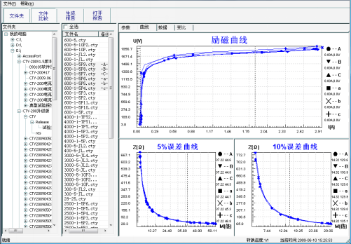 選擇文件: 按下文件比較,用鼠標左鍵選擇多個文件(鼠標右鍵取消選定),選定的文件會在備注欄中標注A、B、C、a、b、c字母,并在曲線頁中顯示多條曲線進行比較,如圖