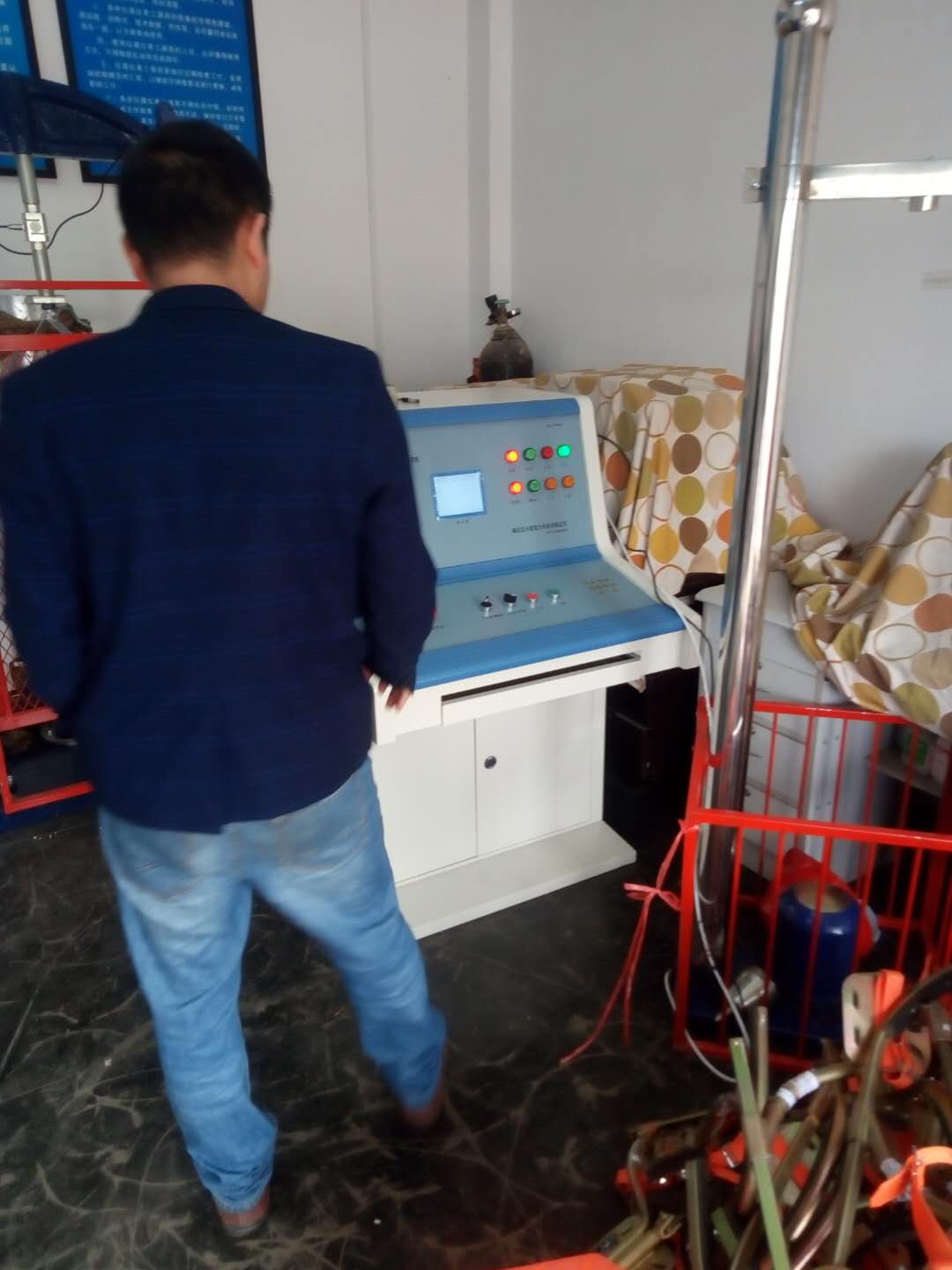 此次培訓的要設備是我公司的產品:YTC6170-3力安全工器具力學性能試驗機。試驗機是由液壓加載系統、安全帽試驗臺和微機測控系統組成。由測試顯示和加力設備兩部分組成(如需測安全帽配安全帽試驗臺) 測試顯示部分由拉壓力傳感器、控制鍵盤、液晶顯示屏、微型打印機、手動按扭等組成。本機設置兩個傳感器接口,兩只傳感器既可單獨使用,也可同時使用。能滿足不同使用場所環境的要求和工作要求,性能穩定,測試結果準確。