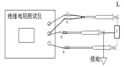 測量電氣產品的元件之間絕緣電阻時,可將“L”和“E”端接在任一組線頭上進行。如測量發電機相間絕緣時,三組可輪流交換,空出的一相應安全接地。(圖A)測量外殼接地起屏蔽作用的電器耐壓時如圖B。