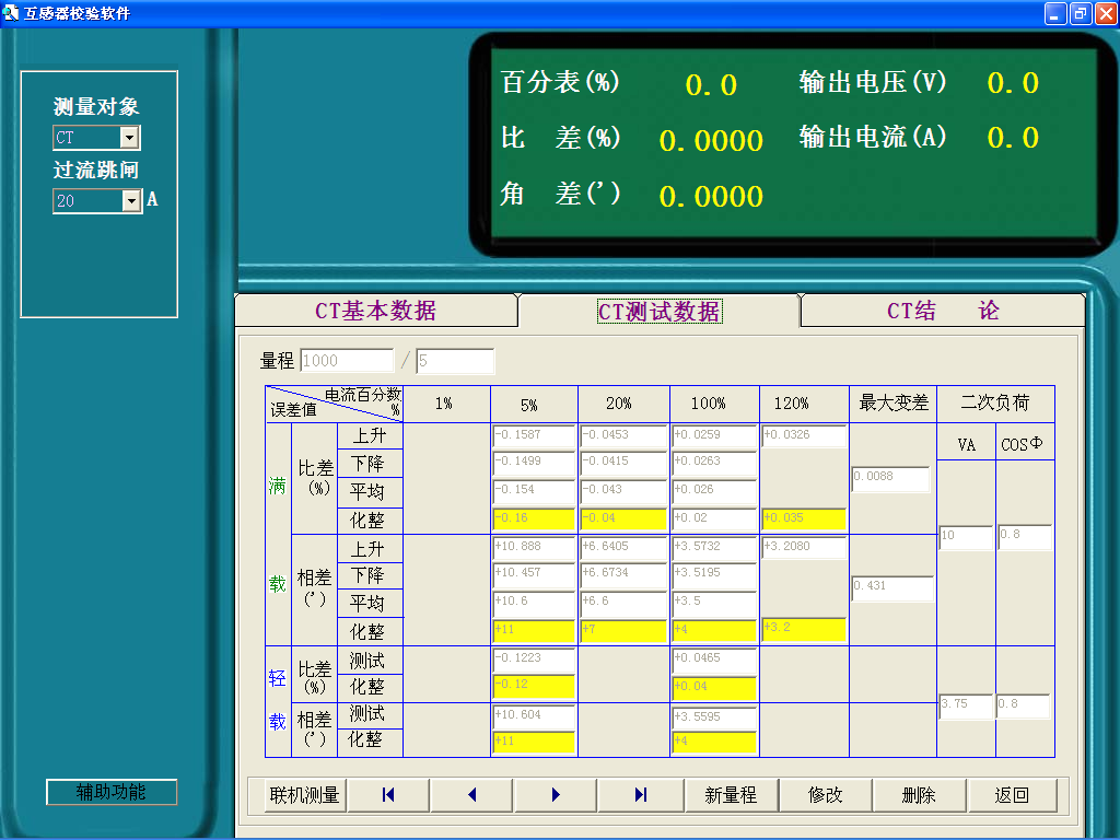 ⑵試數據可以通過人工錄入,也可調用本公司一體化校驗裝置的測試數據,實現互感器校驗、管理一體化;