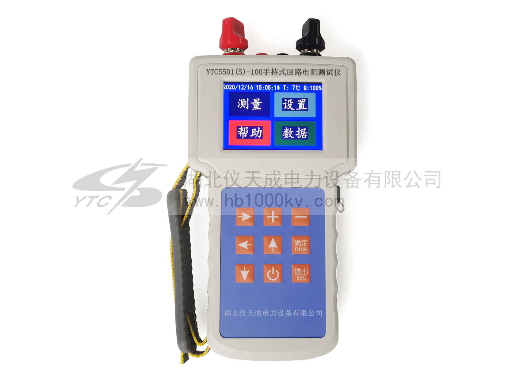 YTC5501(S)-100手持回路電阻測試儀,用于開關觸點的接觸電阻和其它微歐電阻的測量。儀器采用鋰電池供電,試驗電流可達100A,測量準確。本設備為手持式儀器,體積小重量輕,特別適合現場應用。本儀器采用國家標準《GB763》規定的直流降壓法和100A電流測量回路電阻,并符合《DL/T 845.4-2004》的要求。