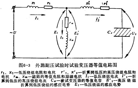 為了便于比較,根據變壓器原理,可以將試驗變壓器在耐壓試驗時副成圖6-3的等值電路圖。