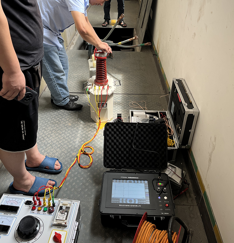 此次客戶那邊遇到的麻煩是電纜在運輸電過程中出現了供不上電情況,客戶那邊先自身對電纜做了基本的檢查,一時間也找不準問題,于是就找到我司去幫忙找出電纜故障問題。我司趕到現場后,先咨詢了客戶相關的電纜類型的問題,如:電纜是否帶電,是帶鎧電纜還是不帶鎧的等等,摸清電纜的類型等一些相關信息后,我司技術人員便開始著手采取相應的故障檢測措施了,首先我們做的是默認的“低壓脈沖法”來檢測電纜故障情況,我們先是通過波形采樣,得到一個比較適合分析的波形后,然后對波形進行分析,從波形我們可以知曉電纜的大致長度,以及故障點發生的大致一個區間位置,然后對那個故障區間位置進行更進一步的甄別查找,這樣便很大程度地減輕了工作人員查找故障的工作量,不過這次的電纜故障查找有點特殊,通過“低壓脈沖法”并不能很好地找出故障問題,于是后面又采取了“高壓閃絡法”進行檢測,高壓閃絡過程,便需要利用到高壓升壓試驗裝置來對電纜進行升壓,從而來得到更明顯的波形。