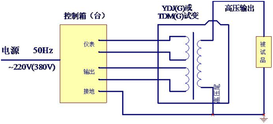 油浸式試驗變壓器交流(工頻)耐壓試驗接線示意圖