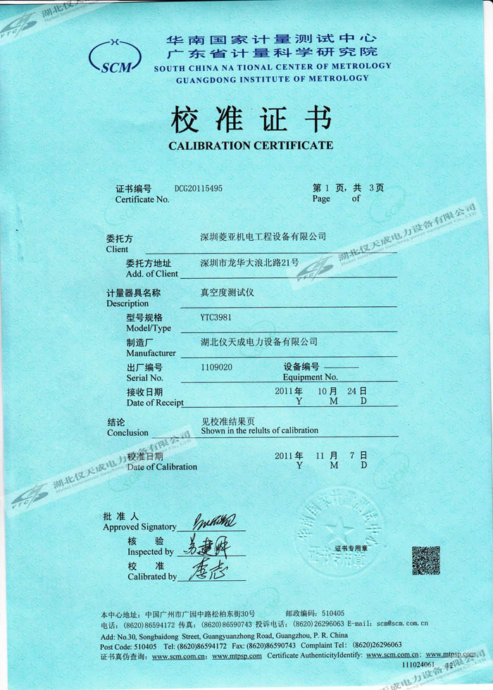 轉(zhuǎn)載:"YTC3981真空度測試儀的資質(zhì)證書" 請(qǐng)注明來源于儀天成電力。 更多技術(shù)問題請(qǐng)致電儀天成電力客戶服務(wù):027-87876585,技術(shù)部專線:027-87876585,在線客服:719388481