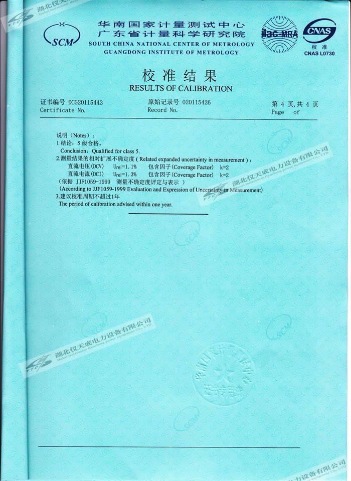 轉載:"YTCZG-200kV2mA直流高壓發生器的資質證書" 請注明來源于儀天成電力。 更多技術問題請致電儀天成電力客戶服務:027-87876585,技術部專線:027-87876585,在線客服:719388481